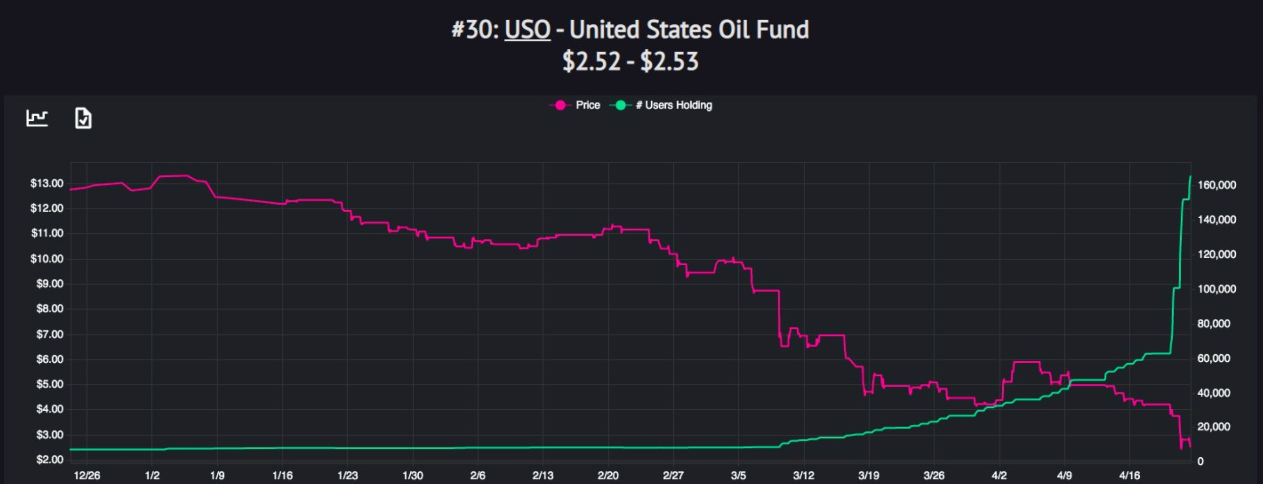 As a side note, do not think that a few hedge funds going bust in a day is only what they deserved. The tech world has long ago enabled the Average Joe invest his money into everything and anything at the tap of a button. With more marketing pressure, peer pressure, and financial pressure, we are all just a tap away from putting ourselves into more financial trouble. In the week up to the oil price collapse, "Average Joes" have started buying cheap oil ETFs. On the day of the collapse, 160,000+ Average Joes were invested in the United States Oil Fund, via the Robinhood app π³, an app supposed to be there for safe long term savings and penny scraping.