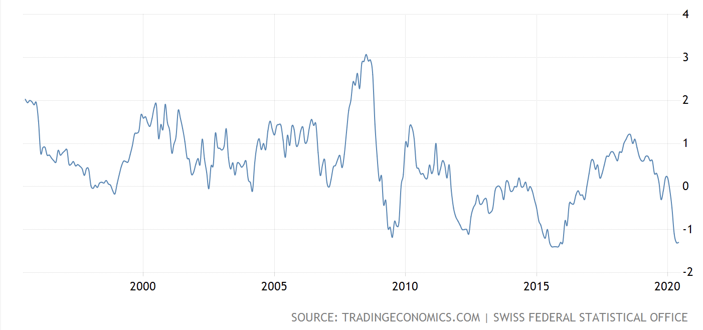 Or shall I show you switzerland? You know, the Central Bank who buys FAANMGs stocks instead of Gold... Again, let's have a look at the same 25 years CPI inflation chart. With an even more voracious money printing of circa 1,250%, starting at CHF 68tr in 1996 to CHF 918tr today, well... Still, zero inflation...