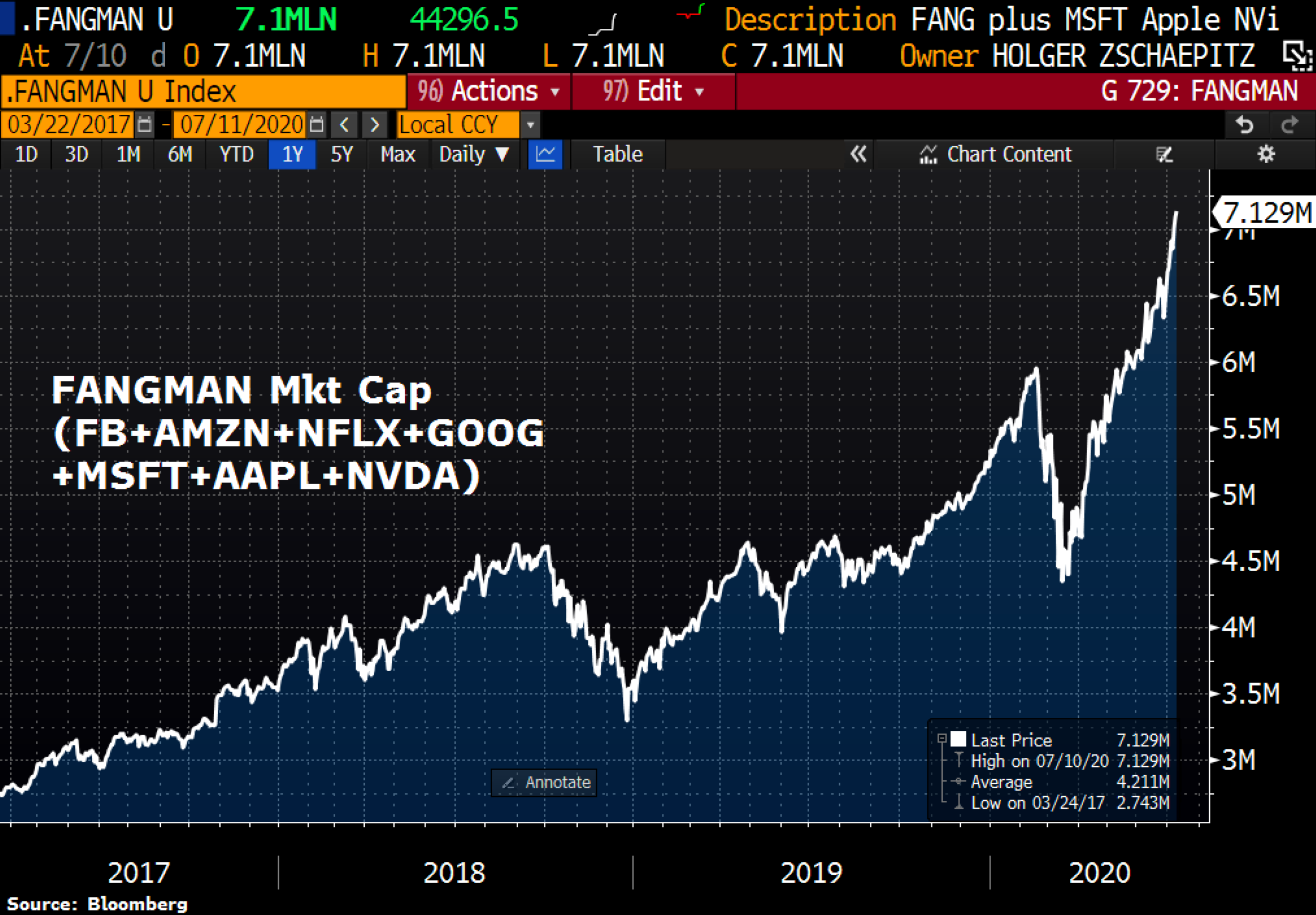 Now of course, the main problem remains the circulation of this money as I discussed in the Velocity of Money. Because at the moment, a lot of the printing of the Fed ends up chasing the price of 5 stocks. Well, for the rounding story here, I give you 7 stocks weighting altogether $7 trillion, or around 35% of the entire GDP of the USA, pre-Covid. I mean wait another two weeks, add Tesla in there, and we will hit the US GDP post-covid with just 8 stocks. Maybe we should ask Apple and Facebook to run the country? Or maybe we should not ask but they will anyway... ๐คญ