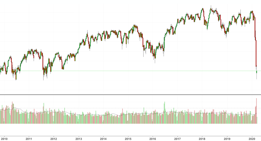 As the economy is forced to shut down nearly everywhere on the planet, the Central Banks panic and try to save their world. A world which has created so much debt that it enslaved us all into work for life to pay them back. So to save their world, they now print helicopter money. In a few days, the US will give $1,000 checks to most adults and maybe also $500 to all children. In a few days, the UK will subsidise up to £2,500 salary for those who cannot go to work. The ECB cannot do this, so they leave it to each Eurozone nation. Instead the ECB indicated it will buy stocks on the market for €750bn. As if this is not enough, all interest rates everywhere are now at zero, and the Fed is also giving daily injections in the market for $1tr (one trillion dollar).