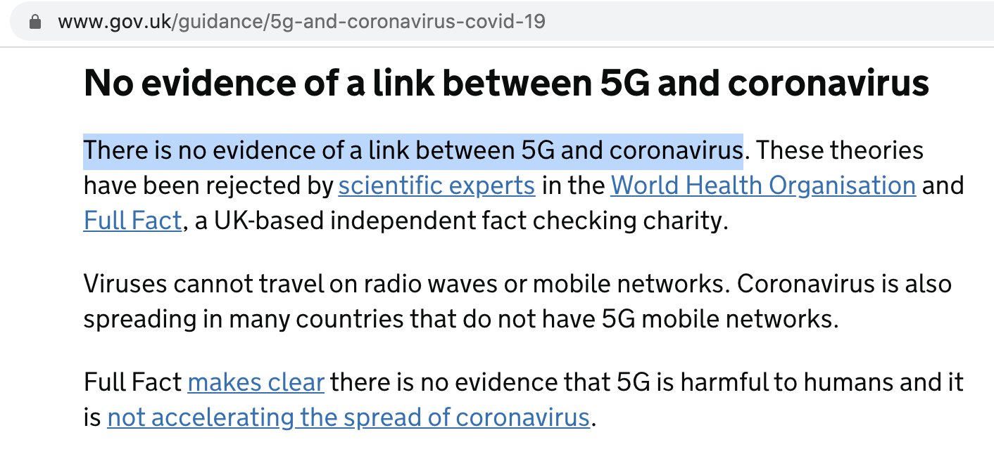 π€ The government has taken great care to state officially that there is "No evidence" that Covid19 can be transmitted by 5G! No don't laugh... they have a full official page for this! So... π€ we may be tempted to conclude, like the vaping no evidence, that we should not come close to a 5G network??? π Ahah... such an entertaining government that we have here... Next please!